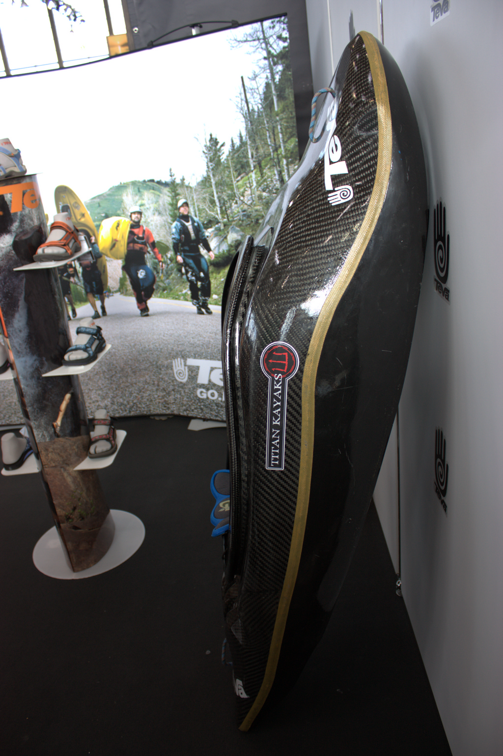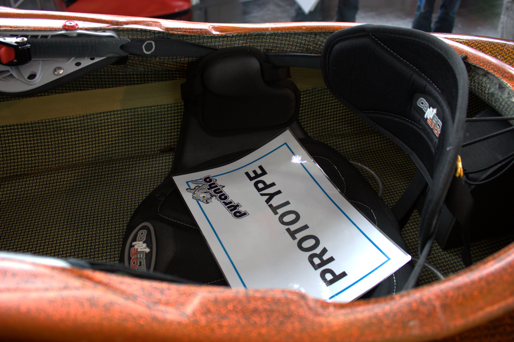 Der Australier Anthony Yap will bis nächsten Frühjahr seine Titan Kayaks an den Mann bringen. Jede Menge Aufkleber von den Pappboot-Fetischisten, aber sonst ne fette Panzeroptik.