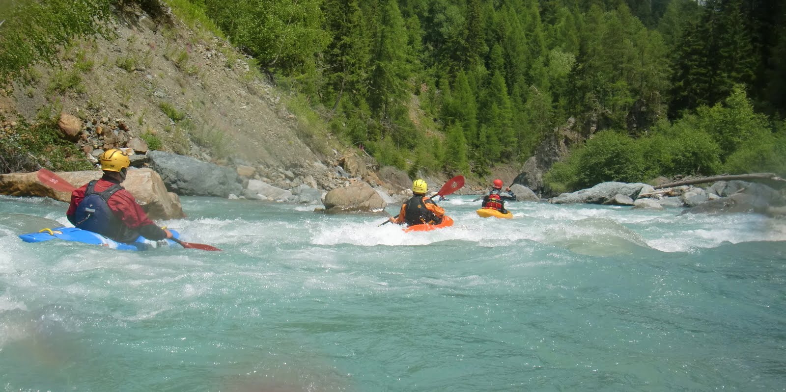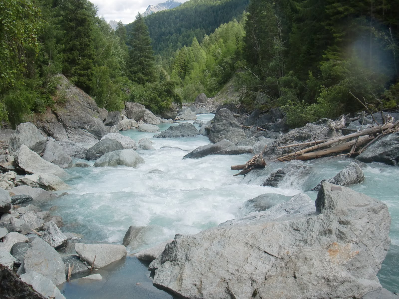 Freitagmorgen treffe ich mich mit dem ersten vorab Trupp der Verfechter bei Scuol. Dank Sonnenschein und bestem Wetter beim gemeinsamen Frühstück, verfliegt der Ärger über die Gebühr von 50 Franken, die der freundliche Gendarm den Verfechtern für das Nächtigen am Parkplatz am Morgen abgenommen hatte zum Glück rasch und es wird der Plan für den Tag geschmiedet. Kurz darauf tragen wir schon die Boote den Hang zum Einstieg der Giarsun Schlucht hinunter. Der Inn hat trotz guter Pegel in den Vortagen nur zwischen Niedrig- und Mittelwasser (20 m3/s Pegel Tarasp), was sich die nächsten Tage auch nicht mehr ändern wird. Auch wenn einige Stellen im Vergleich zum Vorjahr etwas technischer sind und die Wasserwucht weitestgehend fehlt, ist immer noch ausreichend Wasser im Bach um in den einzelnen Stellen Spaß zu haben.