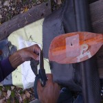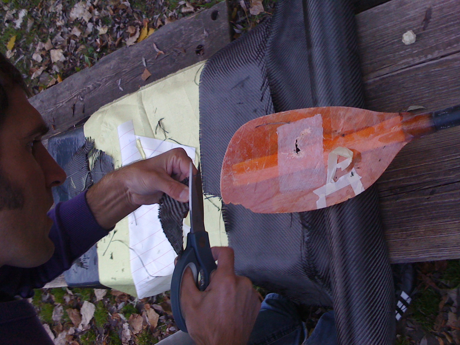 Jetzt heißt es, ran an den Speck! Das Bierchen der Vorgänger in dieser Serie werde ich erst bei erfolgreichem Abschluss der Arbeit zu mir nehmen. Material für diese Aktion sind 2-3 motiviert Paddler, Carbonmatten, Epoxydharz in rauen Mengen, mehrere Schleifutensilien und viel Geduld.