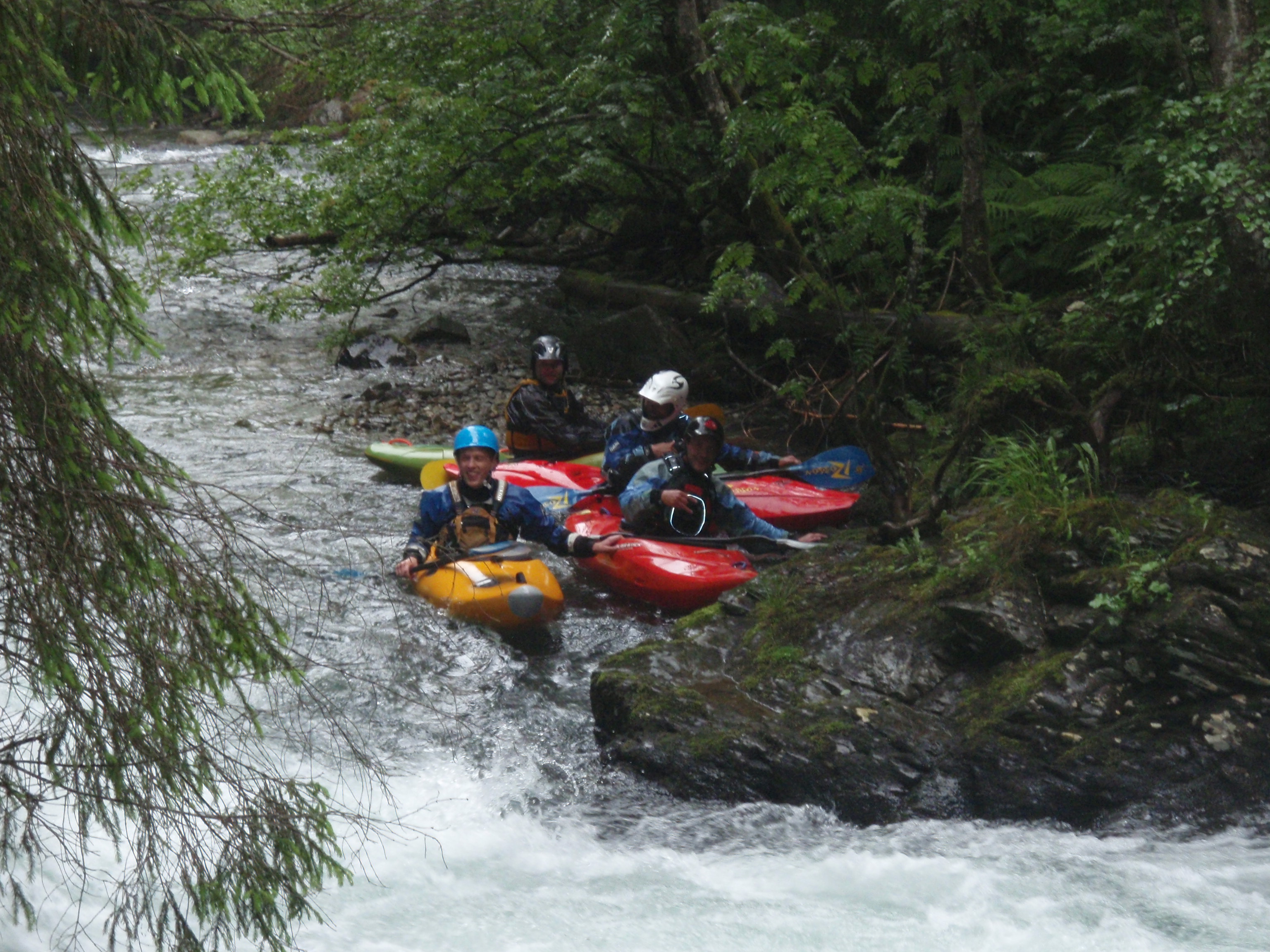 Am Sonntag stand dann noch die kleine Sölk auf dem Plan, allerdings sollte man nicht erst an der Pegelbrücke einsteigen sondern mindestens 1,5km flussaufwärts. Leider wussten wir das nicht und paddelten deshalb leicht wellig mit wenigen Kehrwassern und ohne besondere Vorkommnisse bis zum Stausee.