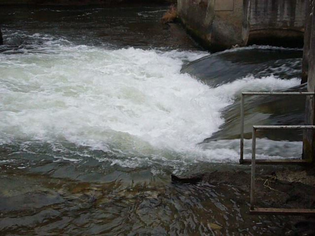Auch wenn es auf den Bildern des Kanumagazins alles noch sehr danach aussah – eine Welle ist definitiv nicht entstanden. Die Walze läuft sehr flach rein und die Fließgeschindigkeit ist gewohnt hoch. Wirklich einladend ist das nicht, auch wenn es wahrscheinlich fahrbar ist (wir hatten keine Boote dabei). Beide Arme haben jeweils Richtung Kehrwasser einen Auslass, in der Mitte hinter dem Pfeiler kommt man wahrscheinlich auch über den Rücklauf. In dem Ding Schwimmen gehen wird wahrscheinlich eine längere Angelegenheit. Also lieber noch mal Handrolle üben, denn sonderlich tief siehts auch nicht aus ;)