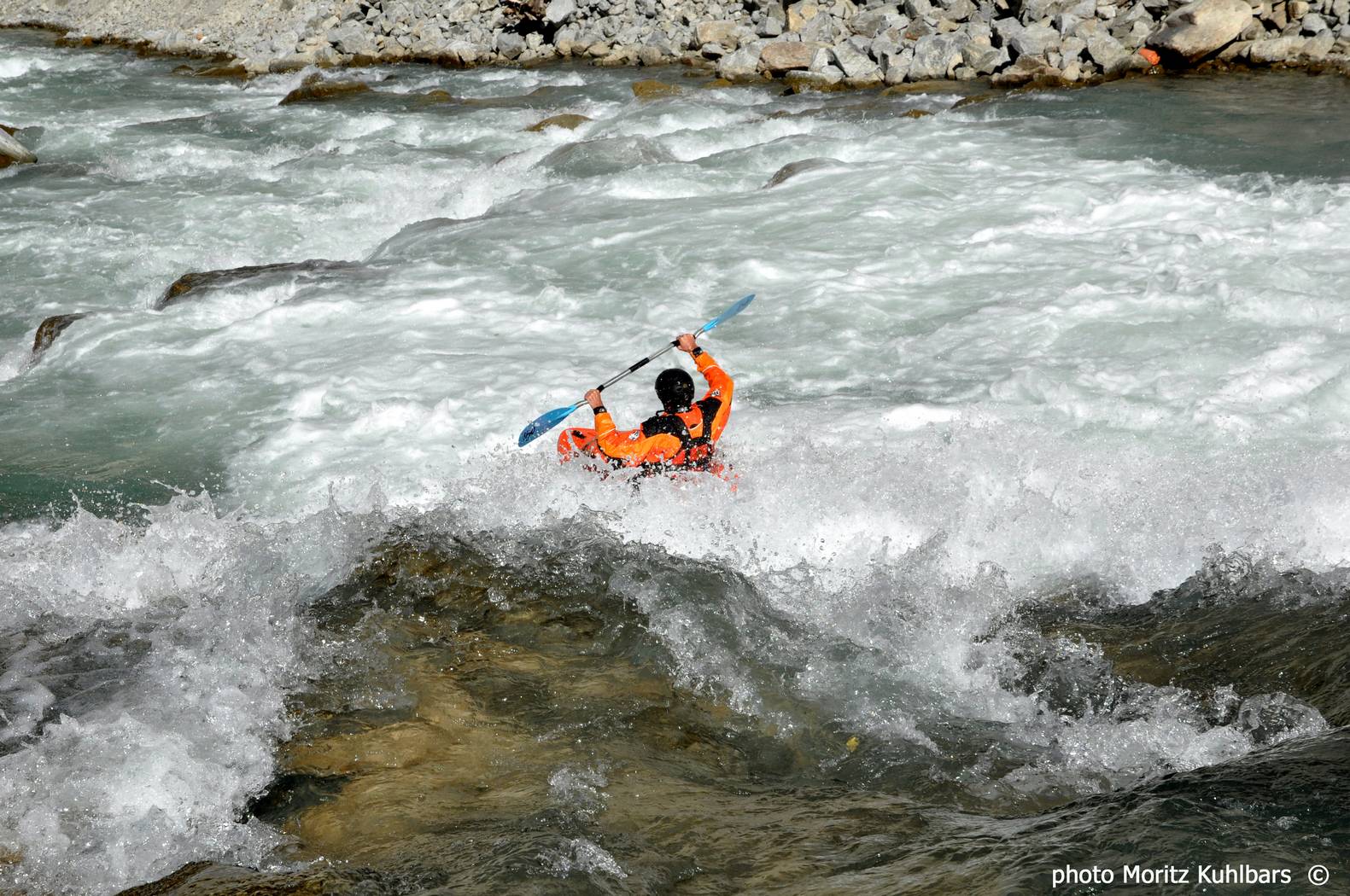 Samstag ging es mit der oberen Ötz los. In mehreren Gruppen paddelten jung und nicht mehr so jung den bei diesem Wasserstand (187cm Tumpen) leicht steinigen Abschnitt. Bei Kaiserwetter genossen im Anschluss manche die Sonne oder holten verpassten Schlaf nach. Der Rest wagte sich an die untere Venter Ache. Bei unserem Wasserstand ein schöner Bach im 3 – 4 Grad, der mit einigen kleineren Stufen und dem am Ende kommenden Kuhfladen zu begeistern weiß. Beim „second-run-double-fun“ gesellten sich dann auch die Pausemacher wieder dazu. Die Linie sollte man treffen, denn sonst kann es beim Rollen unangenehmen Steinkontakt geben. Bei sommerlichen Wasserständen garantiert nicht zu unterschätzen, da der Bach immerwieder zur Klamm wird und es da dann bestimmt gut durchzieht.