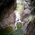Ich bin erst etwas nervös. Letztes Jahr hat mein Fahrkönnen nur zum Shuttle Bunny und fotografischen Dokumentieren der Heldentaten von Sandro und Philipp gereicht. Jetzt will ich mich selber in diese beeindruckende Klamm wagen, die ein Aussteigen mit einem Schwimmer durch die verschiedenen