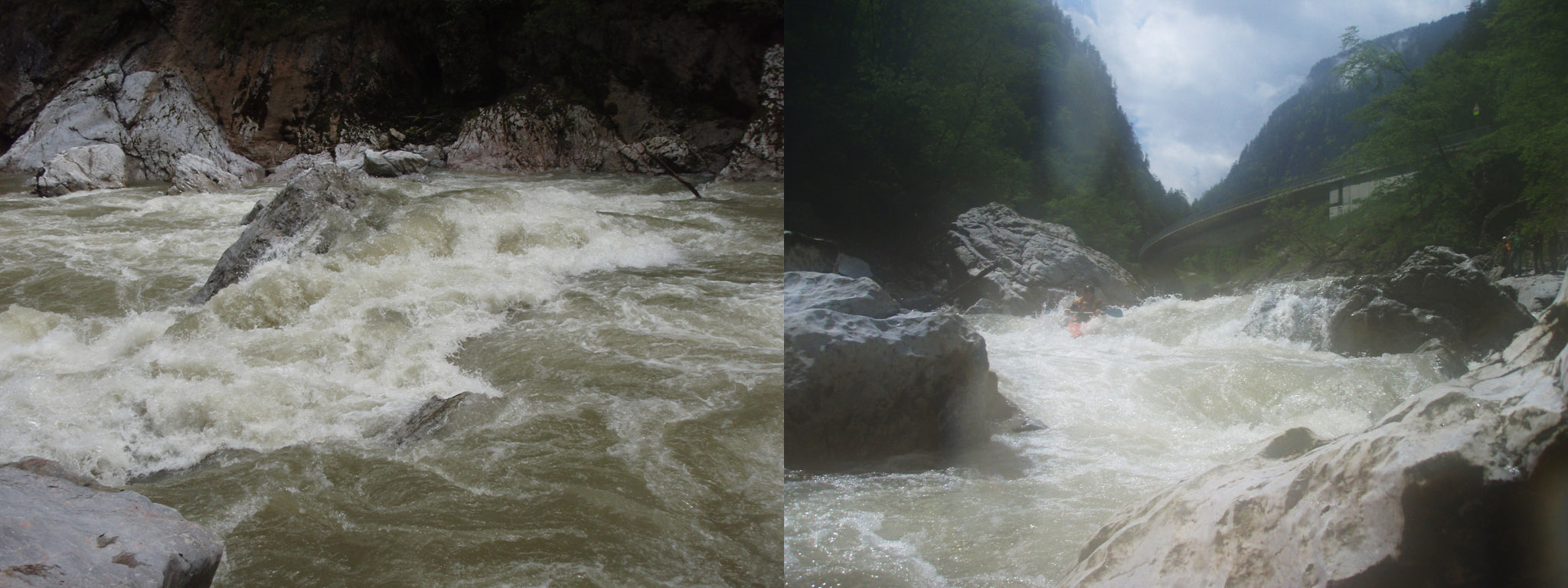 An Tag Zwei 240cm, Strecke von Hinterwildalpenbach bis Camping Sälzam hinter Palfau. Wesentlich ruhiger als am Vortag, die Palfauschlucht solls aber noch in sich gehabt haben WW3+ mit Wellen, Walzen und Presswasser.