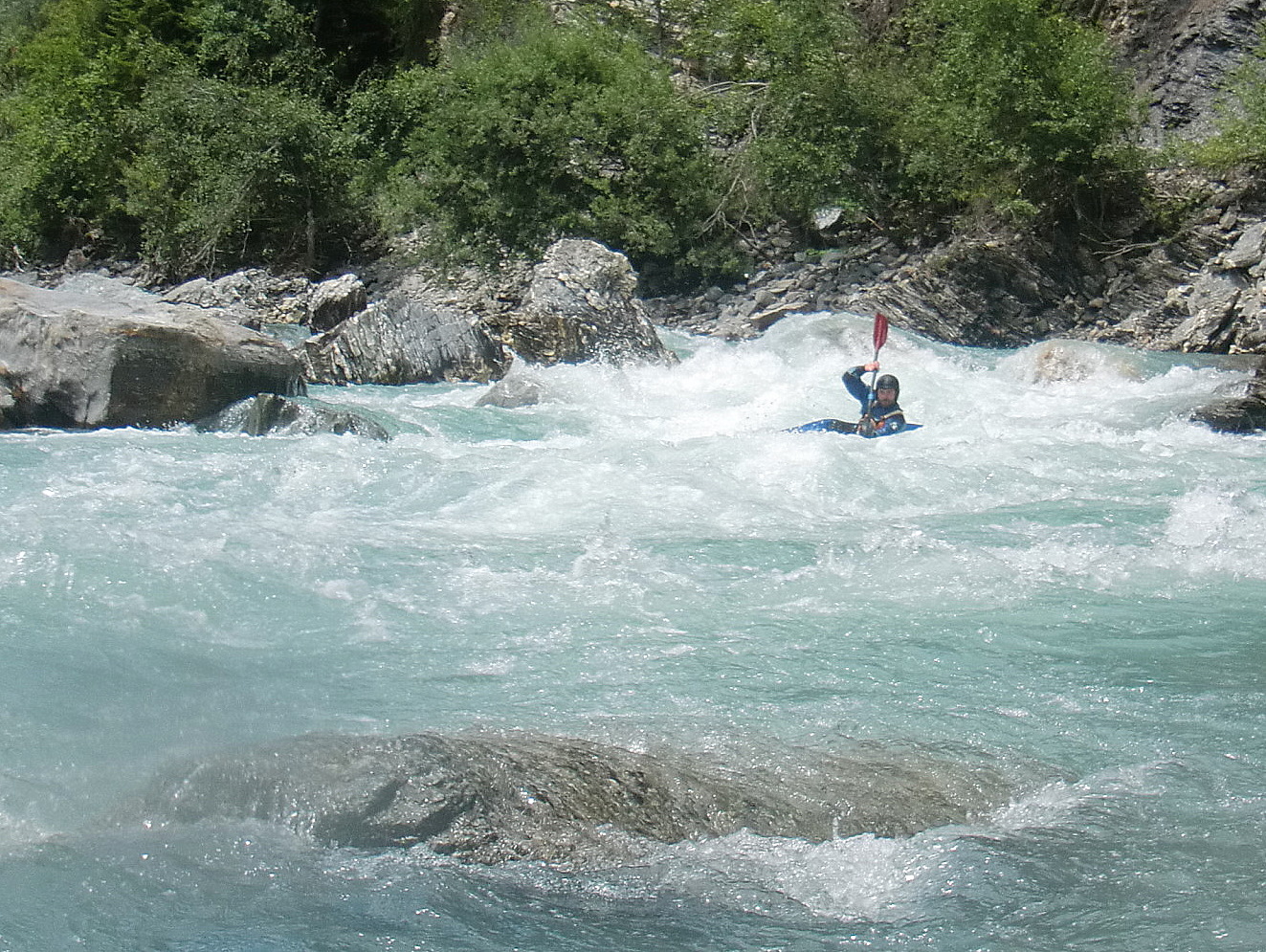 Samstagnachmittag ging es dann wieder aufs Wasser zum zweiten Highlight des Tages, dem ‚Style the Line‘ Contest. Zum Einpaddeln ging es erst mal wieder mit etwa 20 Mann auf die Giarsun und dann weiter bis zum Kernstück der Ardezer.